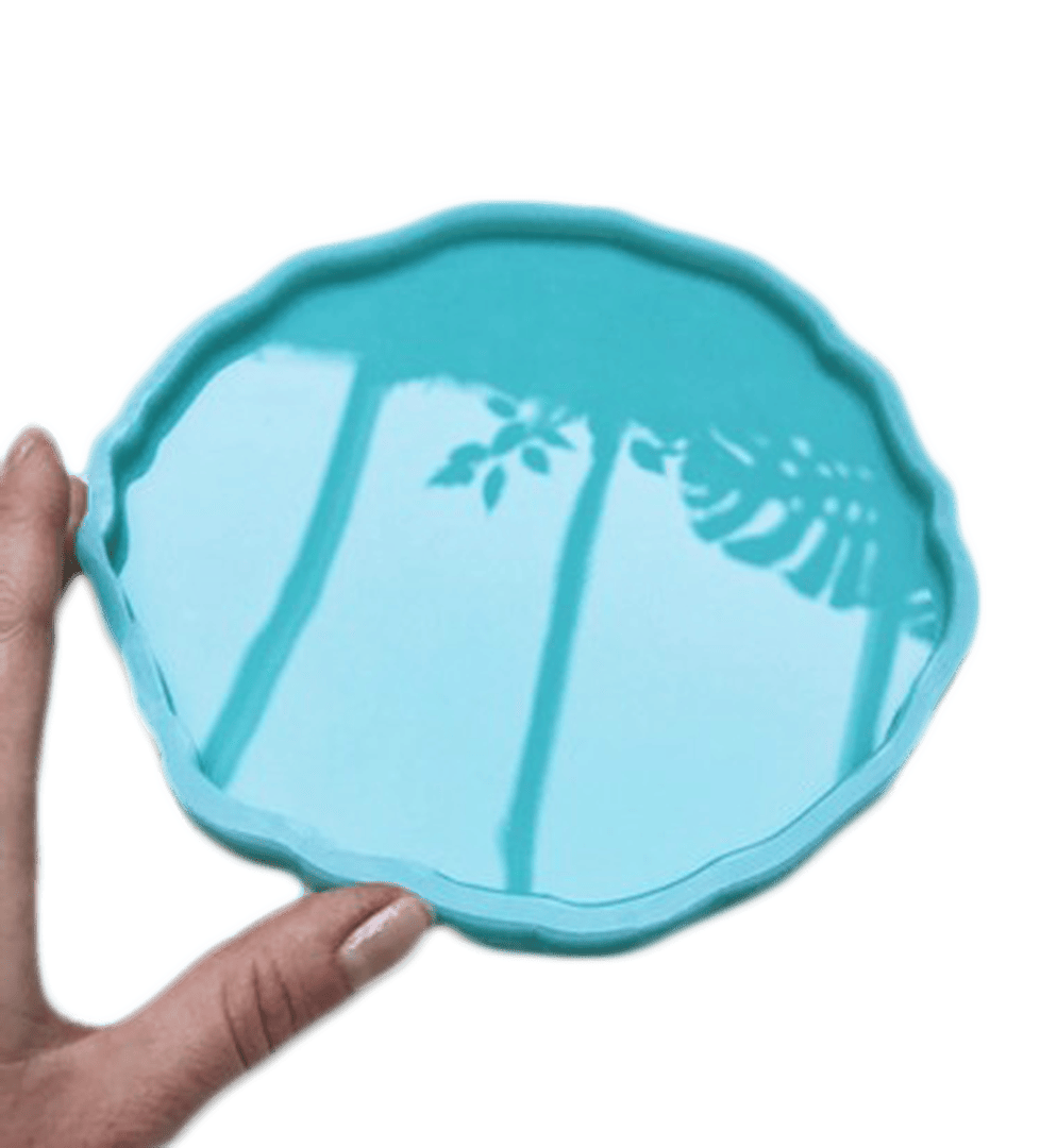 Силиконовая форма для изготовления круглых подносов из эпоксидной смолы.