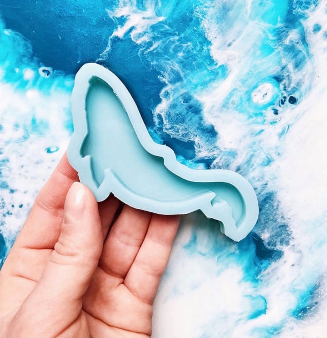 Силиконовый молд для изготовления брошки в виде кита из эпоксидной смолы.