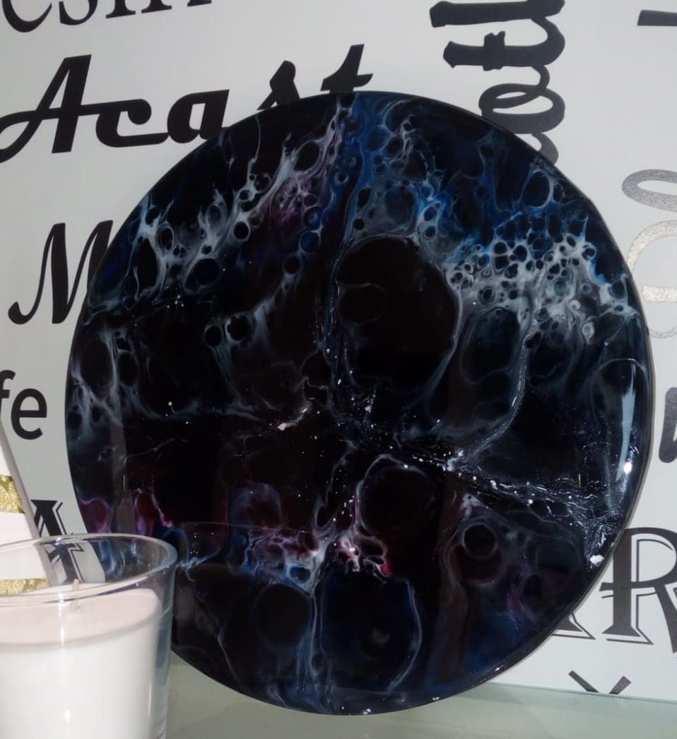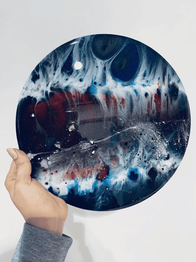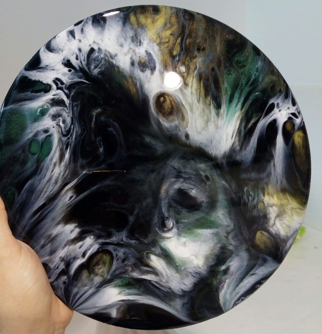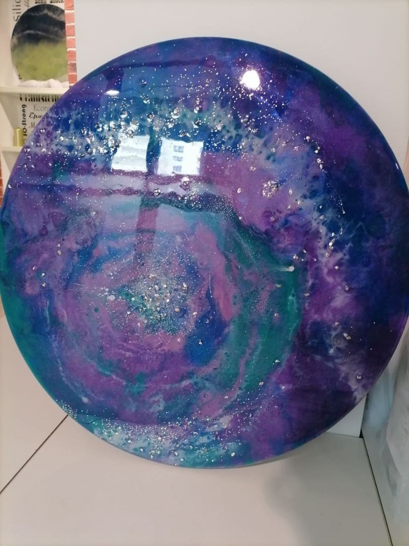 Мы знакомим Вас именно с материалом "эпоксидная смола", поэтому обучение проходит на Артборде круг 25 см. На большой площади сложнее сконцентироваться, а нам важно донести до Вас всю информацию на практике.