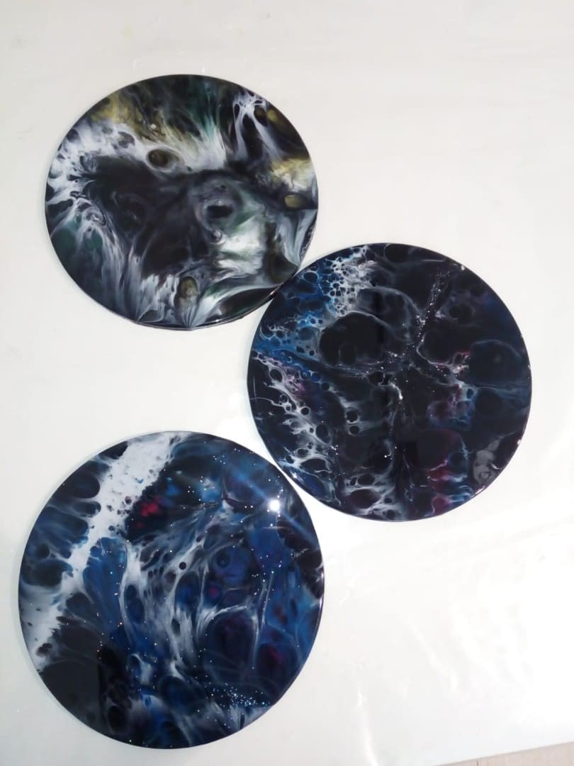 Все материалы, а именно: эпоксидная смола, красители, добавки и Артборд круг диаметром 25 см.